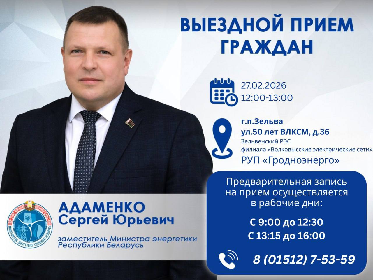 27 февраля заместитель Министра энергетики Сергей Адаменко проведёт выездной приём граждан.